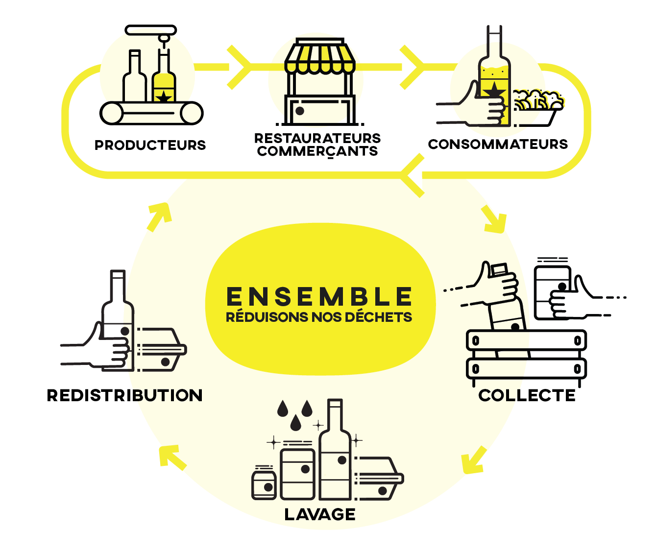 Un système de collecte, lavage et redistribution